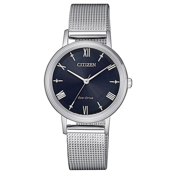 Orologio da donna solo tempo 30 mm in acciaio con quadrante blu e movimento solare Un orologio raffinato ed essenziale con cassa da 30 mm in acciaio lucido e quadrante blu intenso. Gli indici a bastone e i numeri romani alle ore 12 e 6 conferiscono un'eleganza sobria. Il movimento a carica solare garantisce fino a 6 mesi di autonomia senza bisogno di batteria. Il cinturino in acciaio a maglia milanese, con chiusura regolabile, assicura una vestibilità comoda e moderna. Completano il profilo il vetro minerale resistente e la resistenza all’acqua fino a 5 ATM. Diametro cassa: 30 mm Spessore: circa 7,8 mm Movimento: Solare (autonomia fino a 6 mesi) Funzioni: Solo tempo Vetro: Minerale Cinturino: Acciaio maglia milanese Chiusura: Scorrevole regolabile Fondello: Chiuso Resistenza all’acqua: 5 ATM Genere: Donna Stile: Elegante e quotidiano Leggero, luminoso e senza pensieri: l’orologio perfetto per accompagnare ogni giornata con discrezione e classe.