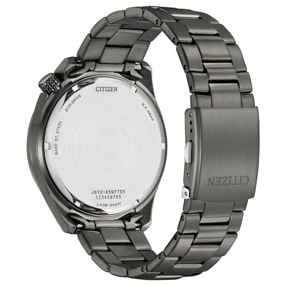Orologio solo tempo uomo collezione OF SEAPLANE. Cassa e bracciale in acciaio con finitura GIP, brunito, corona protetta a ore 1,30, ghiera in alluminio verde e nera, fondo a vite. Movimento Eco Drive (a carica luce infinita) con riserva di carica 240 giorni. Quadrante verde opaco con indici cifre e lancette ad alta luminosità, data a ore 3. Vetro minerale. Bracciale regolabile in acciaio, chiusura deployante con pulsanti. Impermeabile 10 bar (atm).Scatola e libretto istruzioni originale. Garanzia 2 anni.