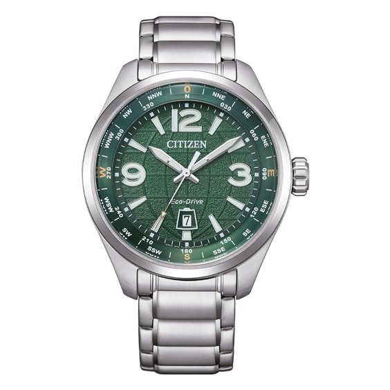 Orologio Citizen Uomo Caratteristiche dell'orologio: Movimento Eco Drive Funzione Solo tempo Cassa in acciaio da 42 mm Cinturino in metallo Fondello a vite Vetro minerale Quadrante colore verde Impermeabilità fino a 10 atm Peso 159,00 gr