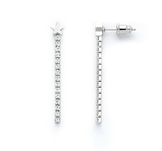 Orecchini tennis motivo stella in ottone e pietre sintetiche.