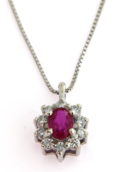 COLLANA ORO BIANCO 750 CON DIAMANTI 0,10 CARATI E RUBINO 0,22 CARATI