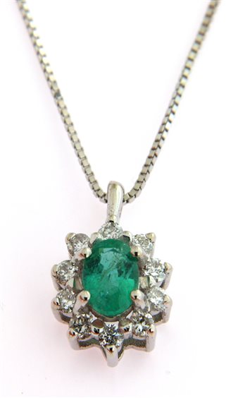 COLLANA ORO BIANCO 750 CON DIAMANTI 0,10 CARATI E SMERALDO 0,18 CARATI