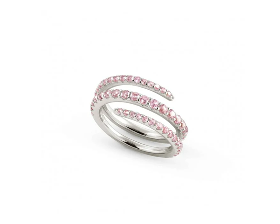 Anello in Argento 925 anallergico disponibile con rivestimento superficiale in Oro Giallo 750 o Rodio Bianco e Cubic Zirconia rosa. Altezza maglia: 0,8 cm.