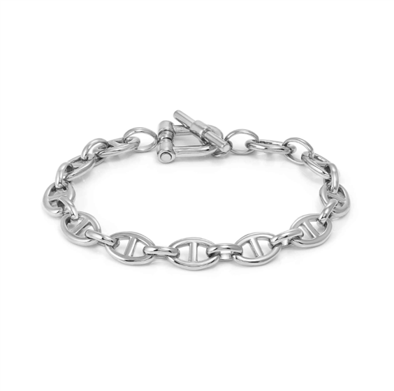 Bracciale in acciaio anallergico, disponibile in due diverse colorazioni. Questo bracciale della collezione Ecclettica offre un look sofisticato e contemporaneo, perfetto per chi cerca un accessorio versatile e di tendenza. Abbinalo e stratificalo con altri accessori, per un look bold e chunky che omaggia gli iconici anni '80. Tipologia Bracciali Collezione Ecclettica Materiale Acciaio 316/304 anallergico Misura Centrale 1.5 cm x 1.3 cm