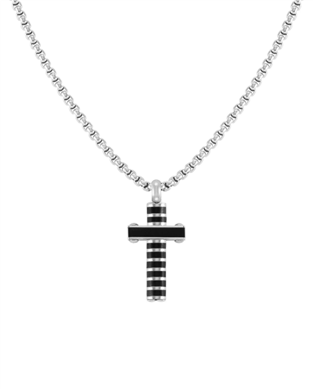 Collana Nomination in acciaio inossidabile con ciondolo croce con dettagli neri. Misura collana 50cm
