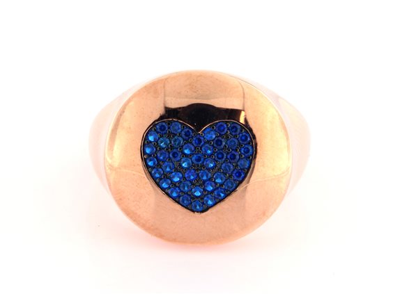 anello in argento 925 placcato oro rosa con cuore pavettato con agate blu. Misura regolabile
