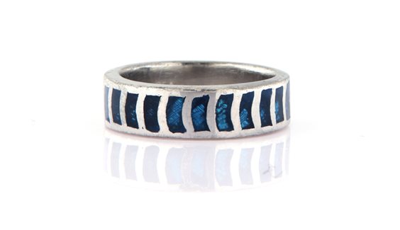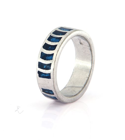 anello tipo fede piatta in argento 925 con smalti color turchese e blu. Misura 15