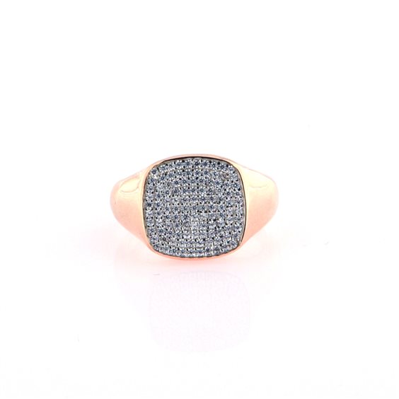 anello in argento placcato oro rosa con pavè di zirconi nella parte superiore. Misura regolabile