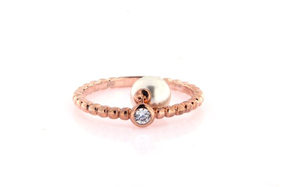 anello in argento placcato oro rosa con ciondolo perla