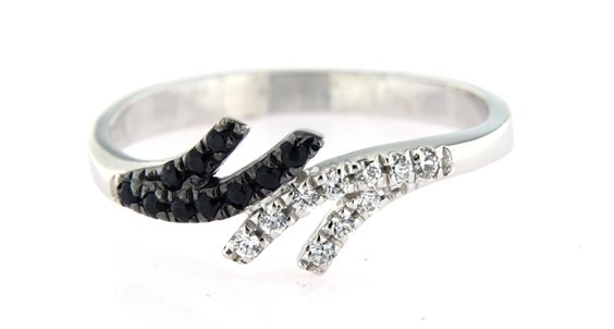 ANELLO ORO BIANCO 750 CON ZIRCONI BIANCHI E NERI. MISURA 14 MODELLO FANTASIA