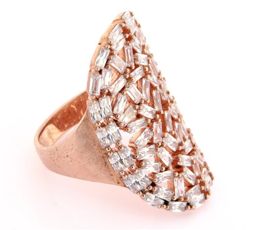 anello in argento 925 placcato oro rosa con zirconi taglio baguette