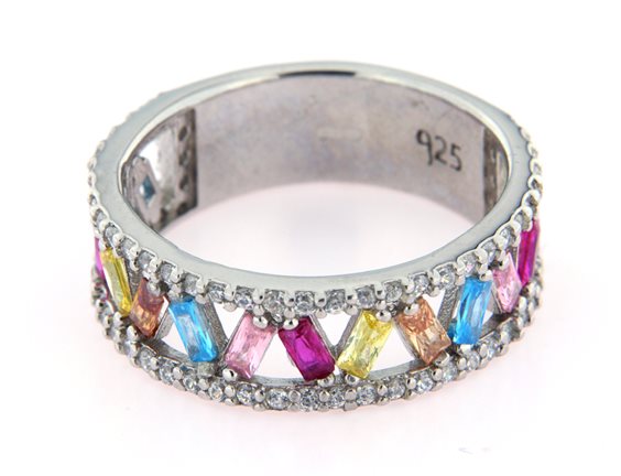ANELLO ARGENTO 925 CON ZIRCONI BIANCHI E COLORATI