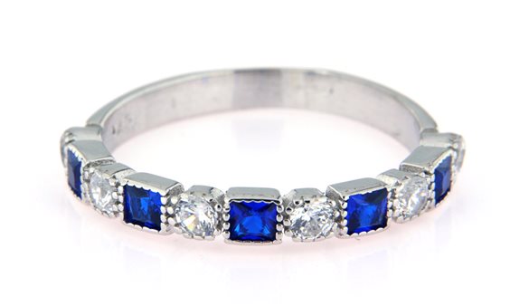 ANELLO ARGENTO 925 CON ZIRCONI BIANCHI E BLU
