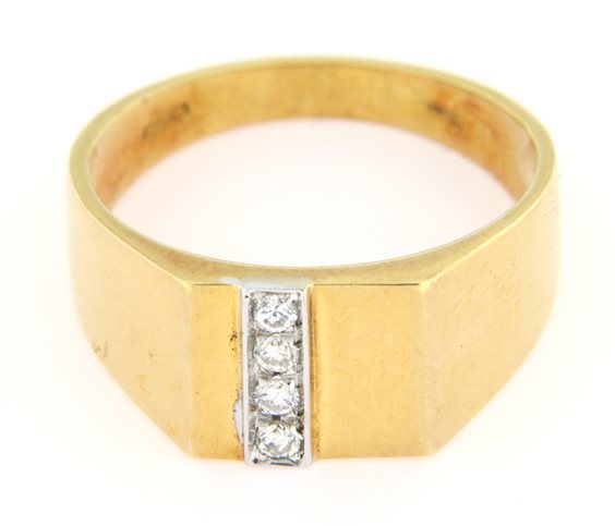 ANELLO UOMO ORO GIALLO 750 CON DIAMANTI CT 0,12 . PESO G.6,2. MISURA ANELLO 19
