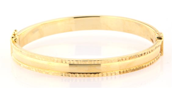 Bracciale rigido in argento 925 placcato oro giallo con cerniera e chiusura laterali e chiusura di sicurezza