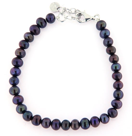 Bracciale perle nere coltivate in acqua dolce lunghezza cm 18 + cm 3 allungamento con chiusura in argento bianco 925