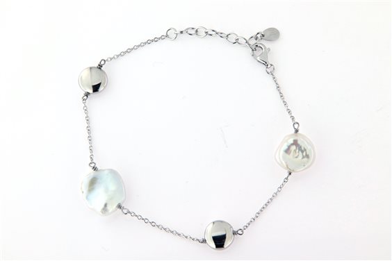 Bracciale in argento rodiato 925 a catena intercalato da perle coltivate irregolari d'acqua dolce lunghezza cm 17+cm 2,5 allungamento