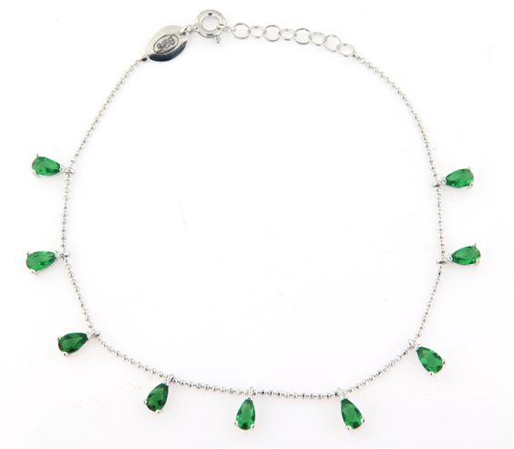 bracciale in argento rodiato 925 con ciondoli a forma di goccia di colore verde