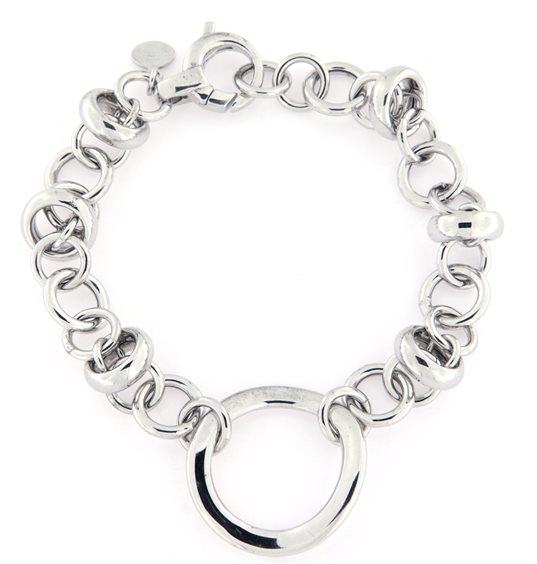 bracciale in argento 925 rodiato tipo maglia rollò con maglia centrale rotonda grande