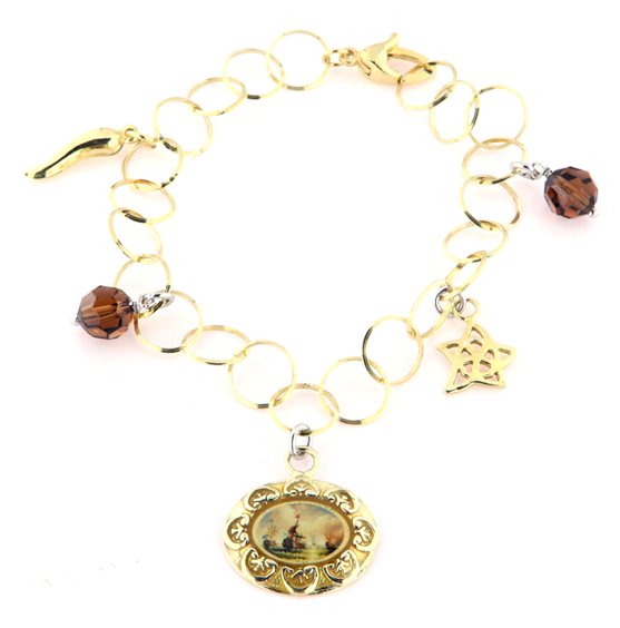 bracciale in argento 925 placcato oro giallo con ciondoli