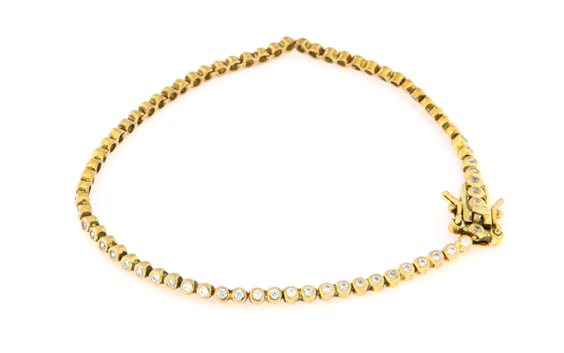 bracciale tennis in argento placcato oro giallo con chiusura a scomparsa e doppia chiusura di sicurezza. Montatura a cipollina