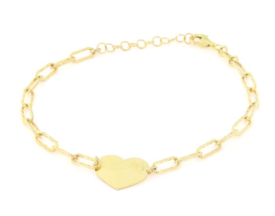 Bracciale in argento 925 placcato oro giallo con centrale a forma di cuore. Lunghezza 17 + 3 cm.