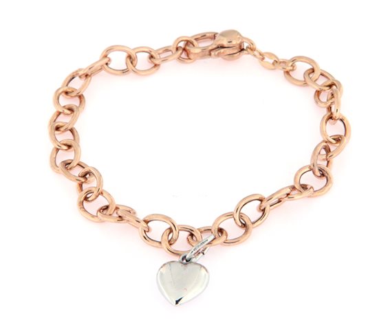 bracciale maglia rollo in argento placcato oro rosa con cuore in argento bianco.