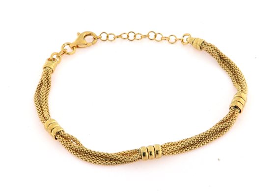 Bracciale in argento placcato oro giallo formato da 4 braccialetti intervallati da 3 canotti lucidi. Lunghezza 17 + 3,5 cm.