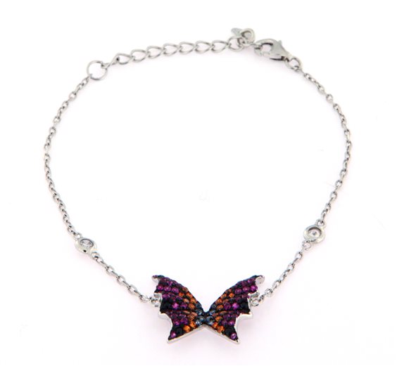 bracciale in argento 925 con centrale farfalla con zirconi colorati. Lunghezza 16 + 2,5 cm.