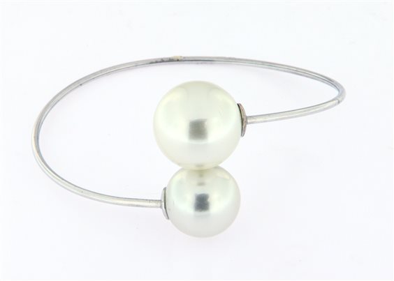 bracciale rigido tipo contrariè con perle in argento rodiato 925