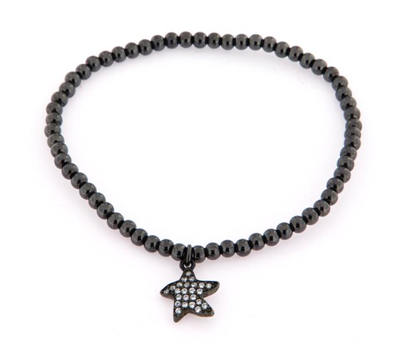 bracciale elasticizzato in argento brunito 925 a sfere con ciondolo a forma di stella con zirconi