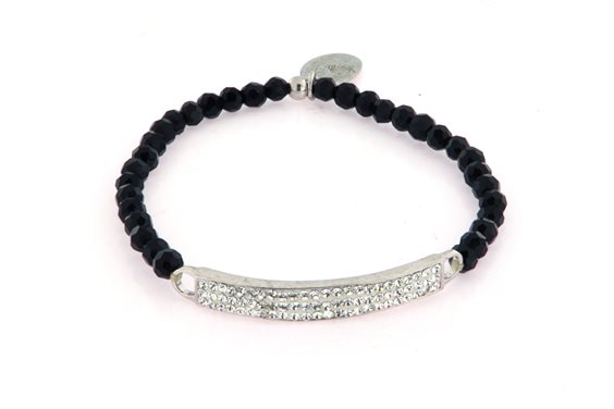 bracciale elastico con cristalli neri e piastra argento 925 con pavè di cristalli bianchi