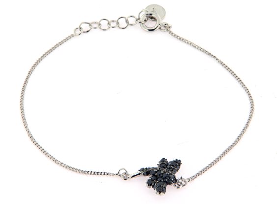 bracciale a filo con ciondolo libellula centrale zirconi neri. Lunghezza 16 + 2 cm.