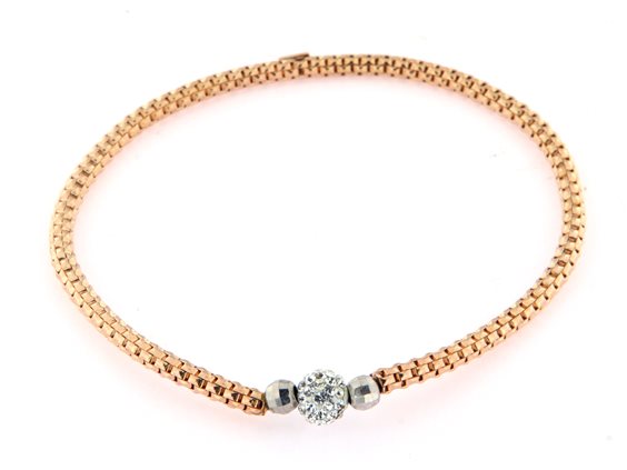Bracciale in argento placcato oro rosa con pallina cristalli centrale