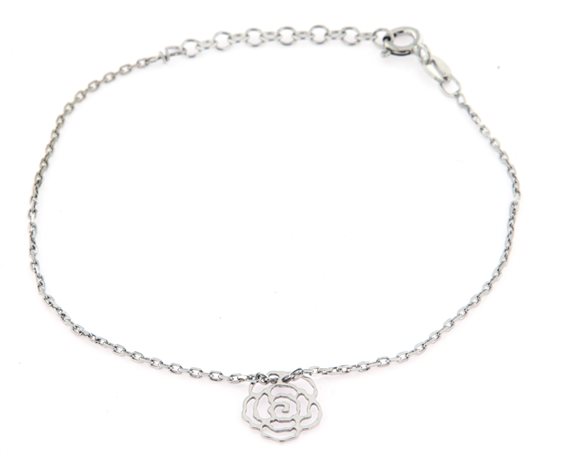 Bracciale in argento 925 rodiato con ciondolo traforato a forma di fiore. Lunghezza 17 + 3 cm.