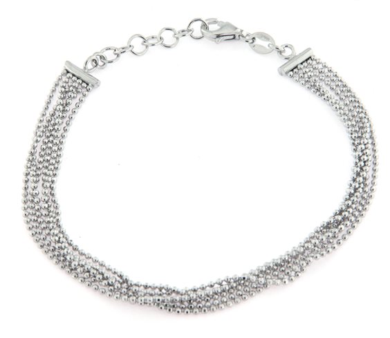 bracciale multifili a palline in argento 925 rodiato. Lunghezza 16,5 + 2,5 cm.