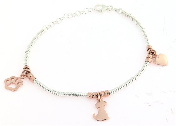 BRACCIALE ARGENTO 925% CON CIONDOLI PLACCATI ORO ROSA