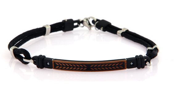 BRACCIALE IN ACCIAIO E CAUCCIU' CON PIASTRA CENTRALE LAVORATA