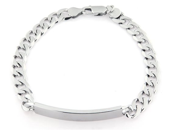 bracciale in argento rodiato 925 maglia groumette con piastra centrale massiccio