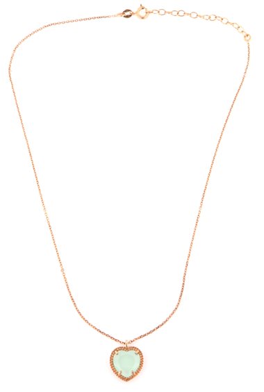 Girocollo argento placcato oro rosa con ciondolo pietra colore verde acqua. Lunghezza 35 + 5.