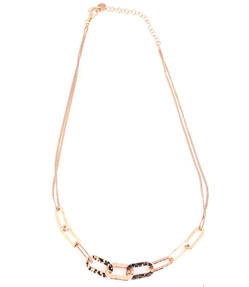 Girocollo argento con catena doppia e centrale a maglia larga placcato oro rosa. Lunghezza 38 + 5 cm.