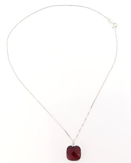 collana in argento rodiato 925 maglia veneta con ciondolo zircone e cristallo forma quadrata sfaccettato colore rosso rubino