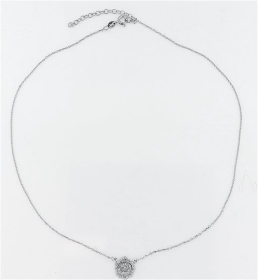 Girocollo argento 925 rodiato con ciondolo con zirconi a forma di rosa pavettato