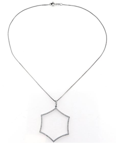 Girocollo argento rodiato 925 con ciondolo a perimetro con zirconi di forma esagonale