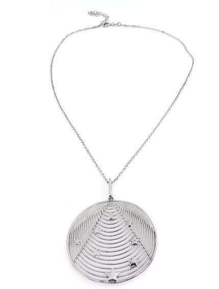 Collana in argento rodiato 925 con ciondolo rotondo cm5x5 con stelle