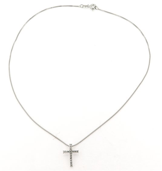 collana maglia veneta in argento 925 rodiato con ciondolo croce con zirconi