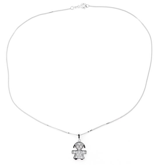 collana maglia veneta in argento 925 rodiato con ciondolo bimba con zirconi
