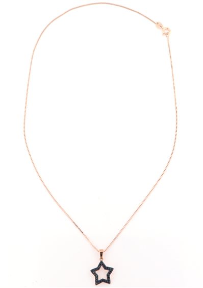 Collana in argento 925 placcato oro rosa maglia veneta con ciondolo a forma di stella a perimetro con agate nere