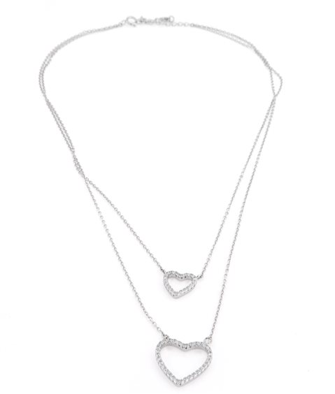 collana doppia maglia rollò in argento rodiato 925 con cuori a perimetro con zirconi