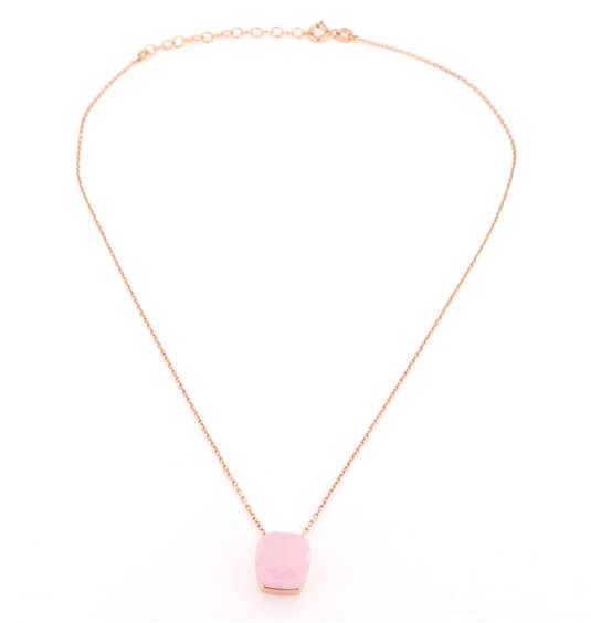 collana in argento 925 placcato oro rosa con quarzo rosa taglio briolè